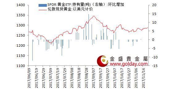 资金面上,全球最大的黄金上市交易基金SPDR Gold Trust的黄金持仓量上一个交易日不变,目前持仓仍为843.39吨,此前一个交易日仓位也不变,上次变动是11月13日小幅加仓0.3吨。近期情况来看,黄金现货持仓已经连续多个交易日不变,持续的震荡偏多走势并没有引起投资者态度转变,现货投资者仍以谨慎观望为主。