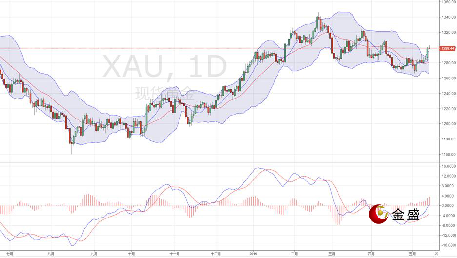 隔夜受避险情绪大幅升温的影响,金价大幅走高,收复1300关口刷新一个月新高。同时,美元和避险货币表现超群,因中国宣布将于6月1日对美国商品实施加征关税,美中贸易紧张局势升级,打击了风险偏好,市场寻求避险。