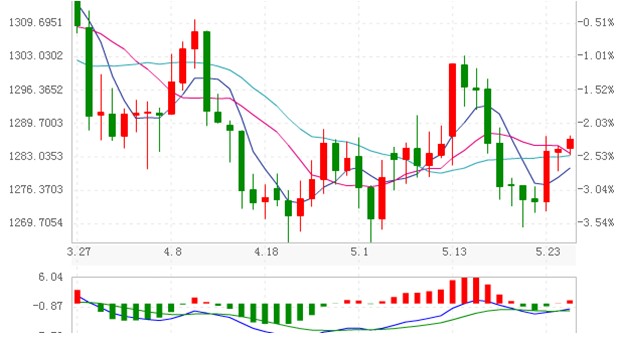 消息面上看,上周五黄金继续小幅反弹,在过去一周,黄金呈现探底回升的走势,在前半周,由于美元的走强令金价承压,黄金最低曾触及1269美元/盎司。之后由于美国经济数据的糟糕表现,美元指数触及近两年高位后急转直下,金价则趁机反攻,回升至1280上方,最终收报1284美元/盎司,周线上涨0.54%。
