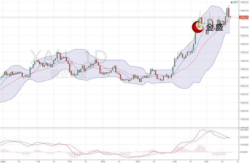 现货黄金上周五录得实体大阴吞没前一天的大阳,形成一个阴包阳的K先形态,价格最低回撤至1420一线,短期均线指标仍向上发散,MACD指标红色动能也未能有效放量,日线上多头还是占优,综合来看,操作上建议以回调做多为主,反弹高空为辅,上方重点关注1432-1434一线阻力,下方短期关注1418-1416一线支撑。