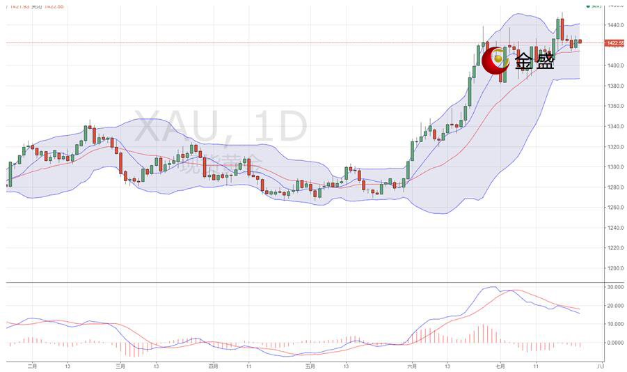 现货黄金目前暂时陷入窄幅盘整格局;上一交易日盘中出现技术面反弹走高再次上探1429美元,晚间美盘再次回撤至1420美元附近震荡运行。MACD指标处在震荡状态,布林带整体持平运行,k线则继续运行中轨线上方,日线来看黄金短线反弹势能不足且延续性也不强,短线偏向震荡下行,下方支撑关注1414附近,若失守该支撑,则可能会进一步试探1400整数关口附近支撑;上方初步阻力关注1430附近,收复该位置前,后市偏向震荡。