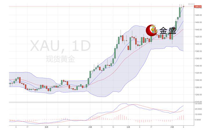 现货黄金隔夜小幅回调处于1510下方震荡,日线最终收得十字星线。今日早间开盘高开,K线运行与布林通上轨上方,布林通开口扩张,各均线趋势上升。上方继续关注1510附近阻力,下方短线关注1500的得失,若不能有效跌破该关口,金价将再破新高。目前黄金看修正回调思路,修正回调确认支撑有效性后再考虑多单参与。