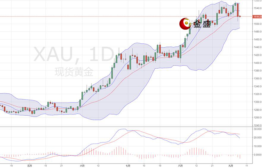 现货黄金上一交易日录得中阴线,日内关注1510的得失,同时也是中短周期盘中关键的支撑点,布林线收口,短线走势变数较大,MACD顶点背离死叉得到延续,绿色能量柱持续放量,只是空头信号较强,即将展开更大的回撤空间;金价若短线能够企稳1520之上,则黄金中短周期仍将维持区间内的宽幅震荡,操作上建议逢高做空,上方关注1525一线阻力,下方关注1505附近支撑。