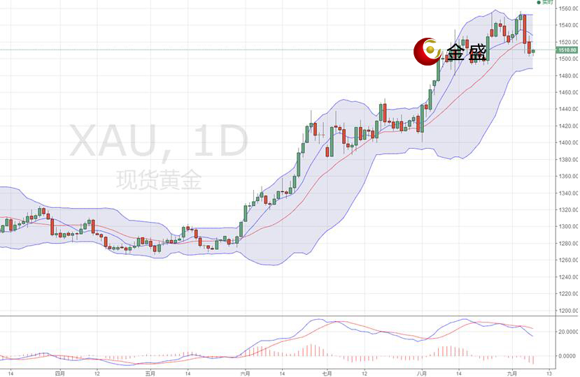 现货黄金上周五(9月6日)亚市早盘开1518.21美元/盎司,最高1527.44美元/盎司,最低1502.50元/盎司,收盘1506.70美元/盎司,全天波幅约25美金,当日跌幅0.82%。