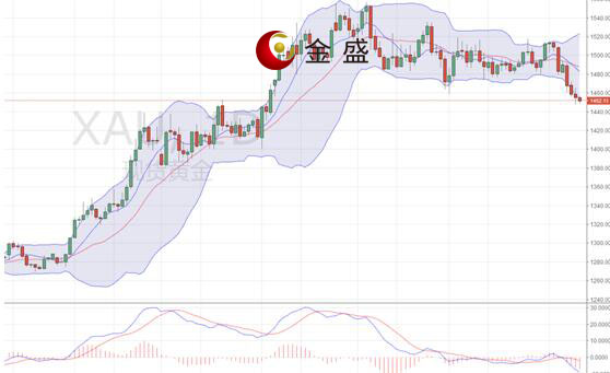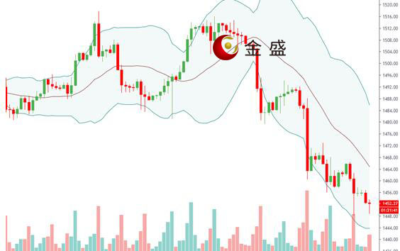 从日线图上来看,现货黄金继续延伸跌势,布林带开口向下放量,MACD绿色动能柱持稳,KDJ随机指标继续走低,指示黄金下跌动能持续,接下来料进一步扩大跌势。目前正试探1446附近支撑,一旦下破则进一步偏向1430附近;价格目前运行至布林下轨下方,各周期均线呈空头排列之势,日线方面下行延伸的空间较为有限,不过整体的趋向还是较弱。