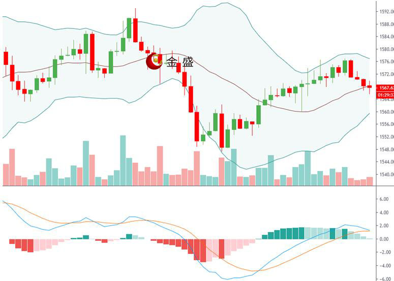 从四小时图来看,现货黄金日内开盘延续昨尾盘震荡回落势头,连阴回落,布林带三轨开始缩口,KDJ和RSI均处于回落过程中,sto快慢线死叉大幅度向下延伸目前已经运行于超卖区域附近,MACD快慢线0轴附近也有结成死叉的迹象,红色能量柱缩减有转绿能的迹象,今日操作建议以反弹高空为主,回调做多为辅,上方短期重点关注1573-1575区间阻力,下方短期重点关注1560-1555区间支撑。