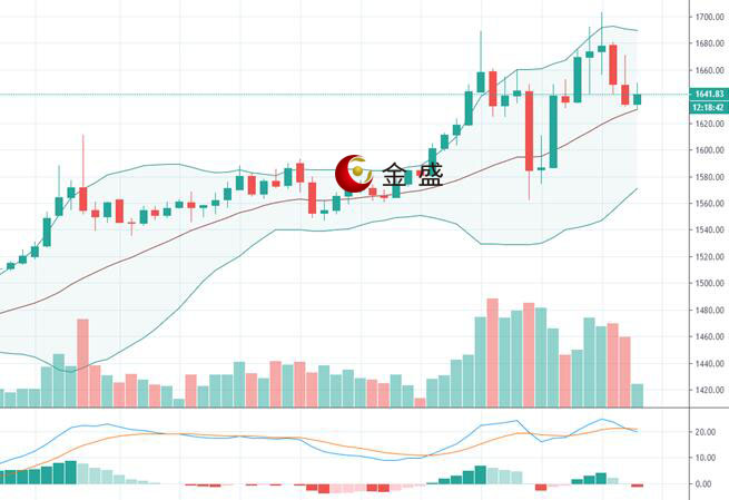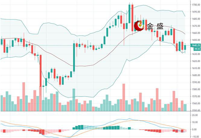 从四小时图来看,现货黄金早间自1630一线开始小幅上行,价格触及布林带中轨之后再次被承压下来,目前仍处于1630上方小幅震荡运行,指标上来看价格冲高回落之后目前中轨已经勾头向下,行情偏弱。下方1630附近属于强支撑区域,若失守该支撑,则增加短线看空信号,上方阻力关注1663附近,短线操作依旧反弹高空为主思路。
