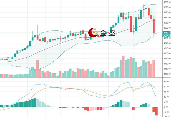 现货黄金上一交易日跌破1600,最低下探至1560附近,日线录得大阴。今日早盘平开高走,但整体走势符合预期的呈现弱势下跌格局,日线级别短期MACD走出死叉,做多的动能在减弱,上方关注1605附近阻力,进一步上行看向1612-1615区间阻力,下方关注1555附近支撑,一旦跌破,金价将延续跌势,进一步看向1540附近。
