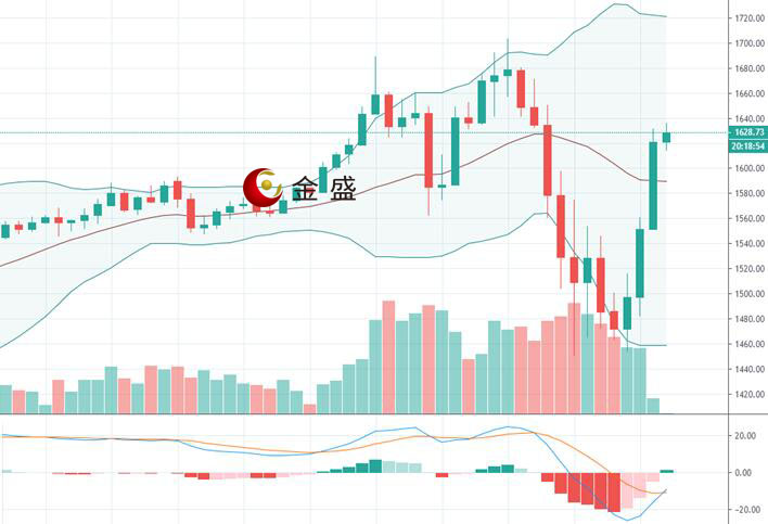 现货黄金隔日继续大涨,日内走出单边上涨趋势,涨逾70美元,重新站上1600美元关口,最高涨至1631美元/盎司。现货白银也大涨,重返14美元关口上方。欧美股市暴涨,美股高开高收,市场投资者憧憬美国国会最终会通过刺激法案,道指盘中收复两万点关口。