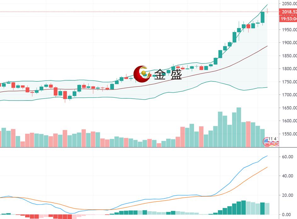 现货黄金上一交易日亚欧盘时段在1970上方维持小幅震荡,美盘开盘后涨势凶猛,站上1980美元后持续拉升,接连突破1990、2000、2010大关,最高涨至2019.89美元,创下历史新高,周三亚盘开盘后,现货黄金成功上破2020美元关口,续刷历史新高,并一度上触2030美元。