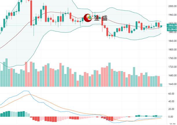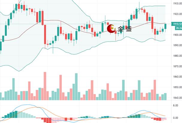 从日线图上来看,现货黄金震荡下跌后反弹,MACD红色动能柱依旧疲软,看涨动能不强,目前倾向于震荡。上方阻力关注1911-1920区间,若顶破该区间阻力,则增加短线看涨信号,下方支撑1894-1890区间,行情会有反弹或者震荡。