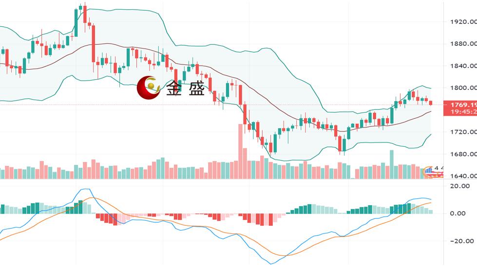现货黄金上一交易日小幅下探,最低触及1772美元一线,目前金价整体呈震荡盘整走势,暂时处于1770-1800区间波动,日内行情较为清淡,小幅波动为主,短期有望延续调整行情。布林带缩口运行,MACD指标零轴上方运行,做空的动能增强,操作上继续高空低多思路,上方关注1795-1800区间阻力,下方关注1765-1760区间支撑,一旦跌破,空头趋势延续,进一步看向1745附近。