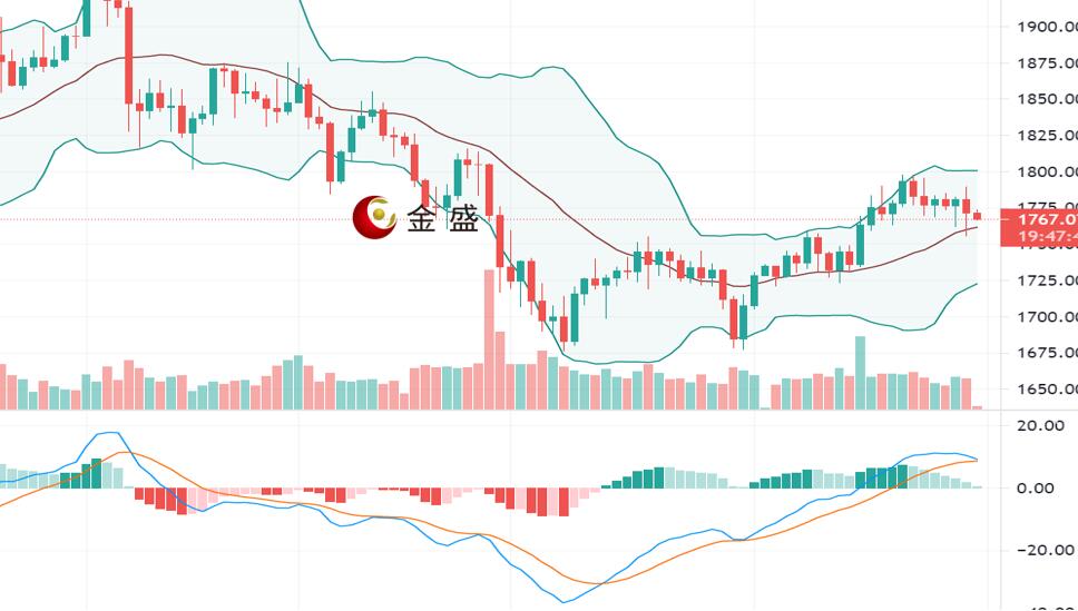 现货黄金上一交易日早盘上探1790美元关口失败,随后持续走低,一度下破1760美元,随后有所回升,以一根上下影线的十字星阴线收盘,日线阴阳交替。布林带有开口的迹象,MACD零轴上方形成死叉,整体震荡向下,行情高低点不断下移,短线走势偏弱,操作上高空低多思路。上方关注1780-1785区间阻力,下方关注1760一线支撑。