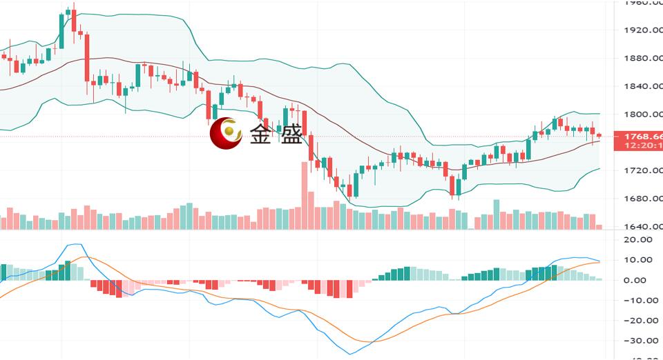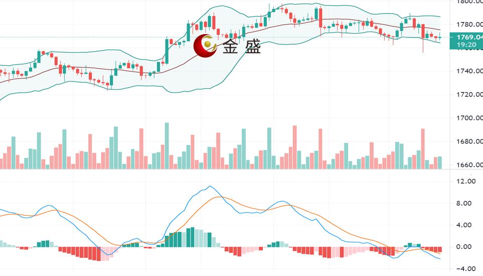 从日线图上来看,现货黄金开盘即迎来走低,日内局限于1765-1773区间震荡徘徊。价格受布林带中轨支撑,布林带开始缩口运行,MACD动能柱缩减,日内仍有回调的需求,上方关注1780关口压制,进一步上行看向1790关口,操作上继续围绕做空不变,日内重点关注1760-1755区间得失,破位进一步关注1745低点能否刷新,破位顺势下看。