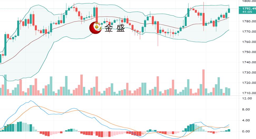 从四小时来看,现货黄金重新走强,最高1796一线,再次逼近1800大关;中长期均线呈上升态势,金价企稳回升,整体呈宽幅震荡的格局,布林带开始收口,MACD零轴上方运行,做多的动能为主。继续关注1770-1800突破,一旦向上突破料将加速上涨,操作上低多为主,突破站稳1800之前不宜高位追多。