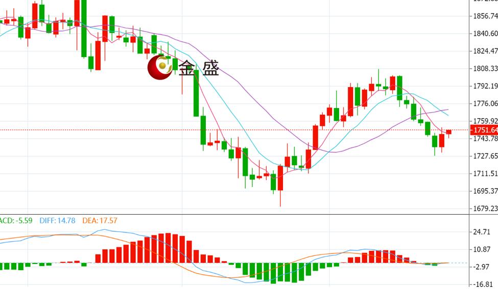 从日线图来看,现货黄金上一交易日开盘延续反弹,早盘开盘在1735的位置后行情回落,给出日线低点1730一带的位置后行情拉升,日线最高触及到了1754附近的位置后行情整理,日线最终以一根上下影线很长的大阳线收线,结束了连阴下跌的弱势格局,K线呈现阴包阳形态,有利于进一步的看回弹,操作思路上建议低多看涨为主;上方关注1765-1770区间阻力,下方关注1730一线支撑,一旦跌破料增加下行风险。