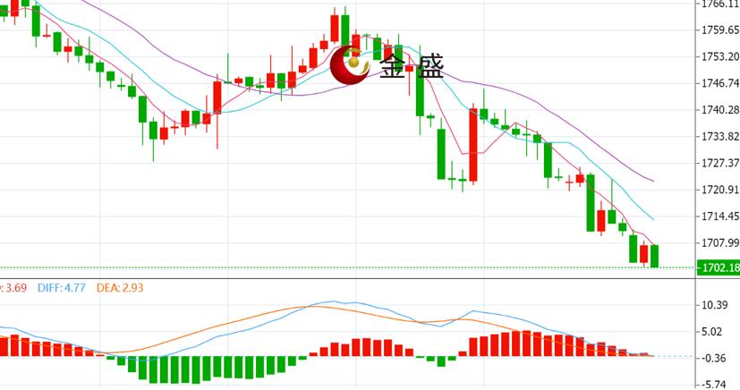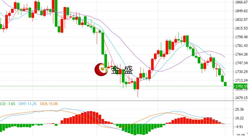 从日线图来看,现货黄金上一交易日开盘小幅横盘后上涨,并在涨至日内高位后展开下行,盘中呈持续走低;欧市盘中,黄金扩大跌幅,但仅触及日内低位后立即反弹;直至美盘,黄金力度不足,仅在触及日内高位附近后再次回落,截止收盘,跌至日内低位附近,盘中录得中阴,日线双连阴弱势表现。今日行情开盘加速下行,并即将触及千七关口,日内料进一步下行,操作上考虑反弹做空为主。