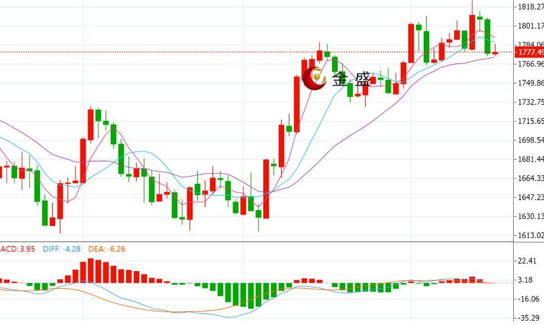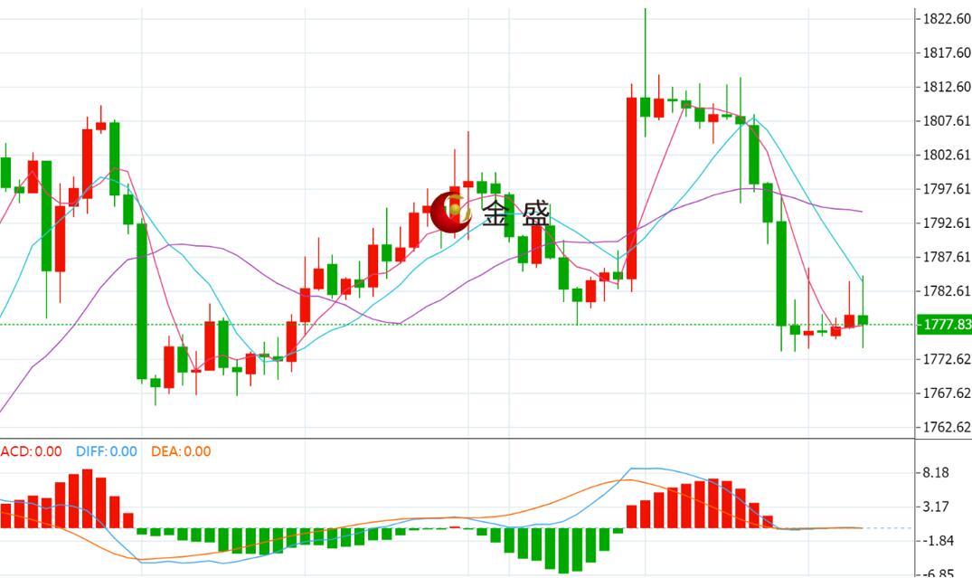 从日线图来看,现货黄金上一交易日开盘自日内高位展开下行,盘中持续走跌;欧市盘中,黄金扩大跌幅,刷新日内低位1773附近,并在触及日内低位后小幅回升持于日内低位横盘;美市盘中,延续此走势,盘中录得实体大阴,日线上,今日行情开盘小幅回升,但上方均线压制较强,日内保持看空。