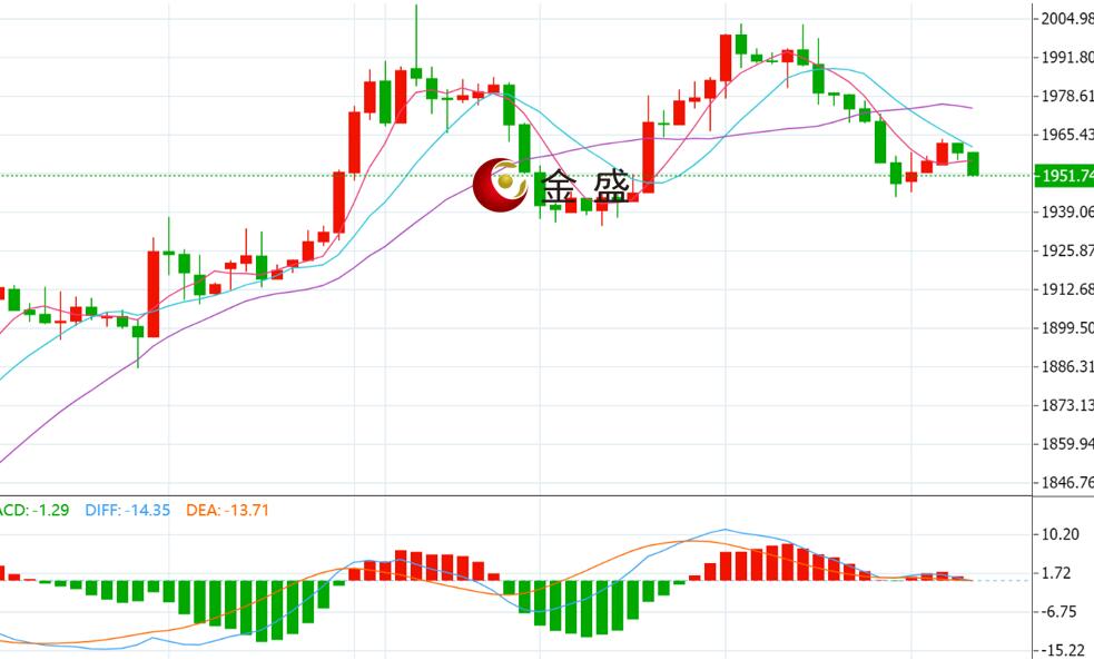 从四小时图来看,现货黄金上一交易日受阻于MA10日均线走震荡下行走势不断下跌,当前布林带处于处于开口期,MA均线走出双死叉,MACD指标绿色动能柱放量,快慢线死叉向下,整体上四小时级别行情偏弱运行,目前行情有初步止跌信号,若行情不能尽快站上短期均线并突破中轨,行情有进一步测试1934的风险,操作思路上建议反弹高空为主,上方关注1970-1975区间阻力,下方关注1945-1940区间支撑。