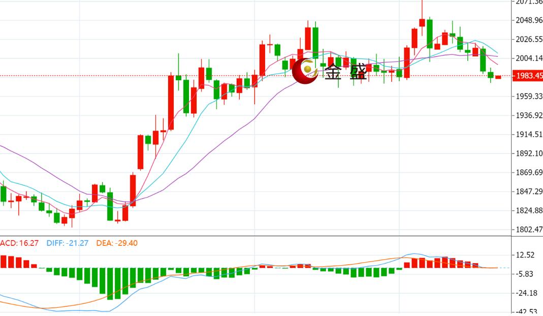 现货黄金上一交易日开盘后先拉升给出1993附近位置后展开回落,最低给到了1974附近后行情小幅拉升,最终以一根下影线较长的中阴线收线。MACD指标死叉发散,绿色柱线放量,空方占据较大优势。日线触及支撑,今日的行情需要盘整,目前上方1990就是一个重阻力,短期震荡修正后看好进一步走低,下方关注1975-1970区间支撑。