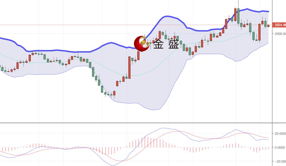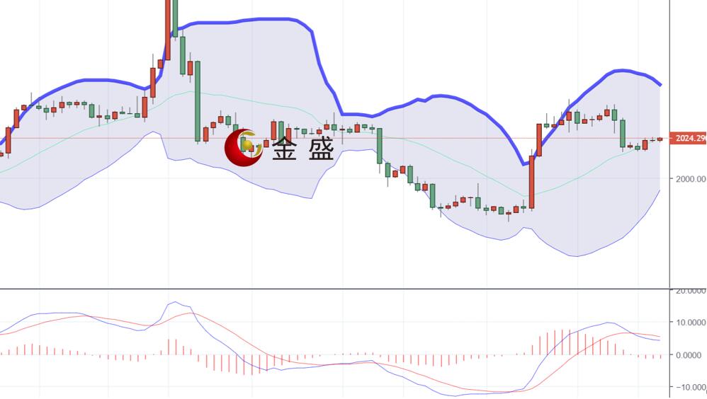 从日线图来看,现货黄金上一交易日因美联储地方官员讲话给降息预期泼冷水,尾盘一度下跌到2015一线,日线录得大阴线,形成了强转弱的表现。布林带呈缩口运行,短期行情还需进一步的调整回落,目前金价运行在布林中轨附近,预计将继续保持弱势行情,走低的可能性较大。