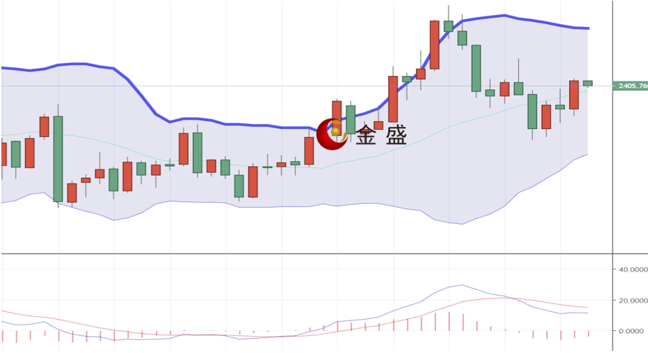 现货黄金上一交易日亚盘时段最低下探2376一线后震荡走高,美盘时段金价加剧短线震荡走势最高上探2397一线最低下探2382一线,尾盘消息面刺激金价快速打破下跌结构,金价加速走高最高上探2412一线后震荡回落窄幅收盘,日线以一根下影线较长的大阳线收线,两根阳线夹杂一根十字阴线,日线维持在高位宽幅震荡,短期涨势较好,后续黄金将延续上涨,上方压制关注2430一线位置,日内操作建议布局低多为主,下方关注2390-2380区间支撑。