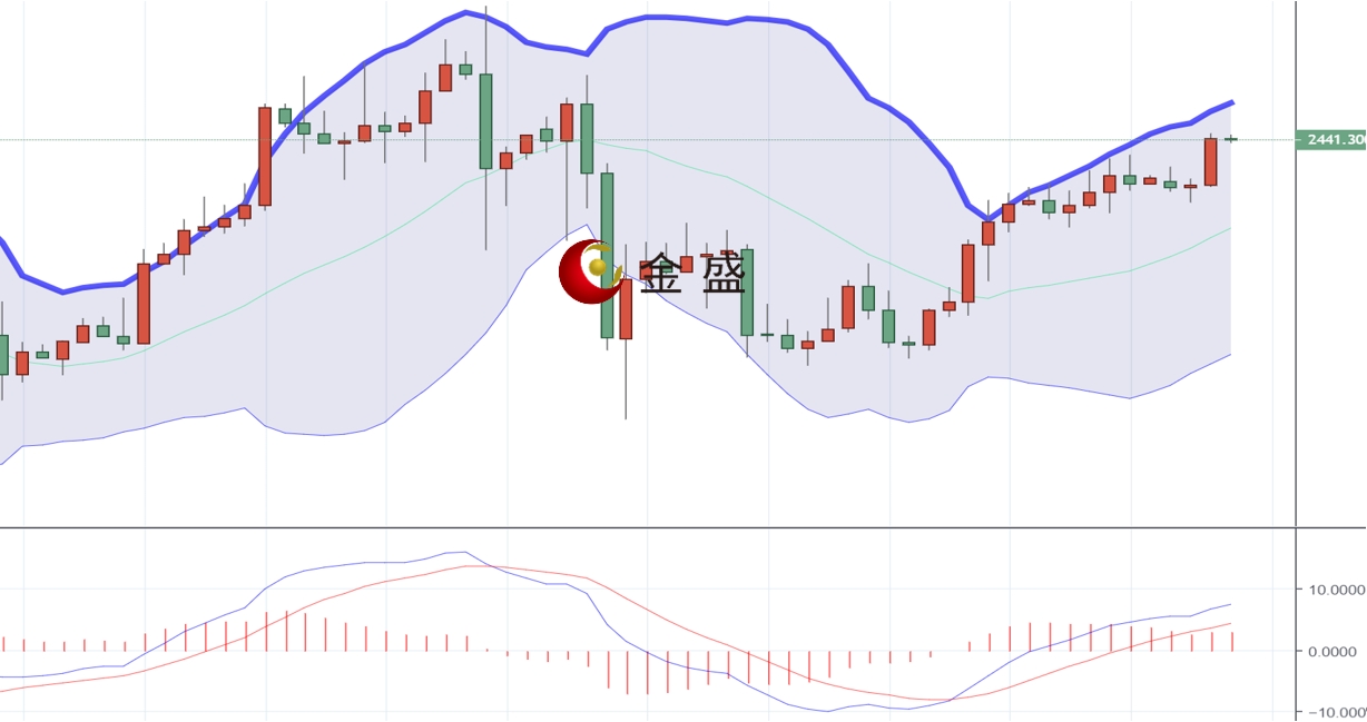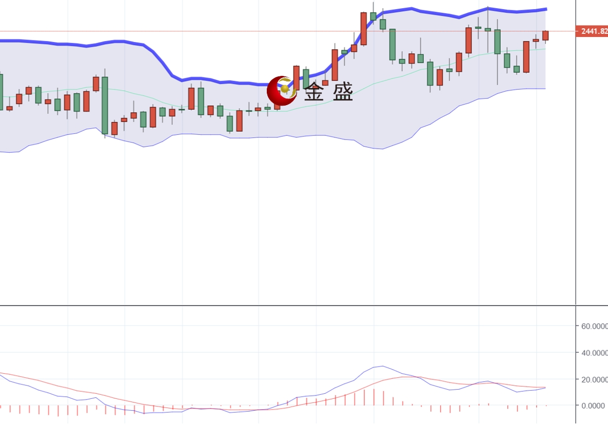 从四小时图来看,现货黄金上一交易日早间开盘后震荡修正,随后依托四小时支撑2417位置止步上行,最终价格阳线收尾。今日早盘黄金在2433受阻回落2423附近后,午后再次走强,目前行情刷新上周五高点2437压制,强势突破2440美元。四小时基本维持在区间内拉扯,MACD金叉缩量震荡,布林开口上行,金价维持震荡运行,日内下方首要支撑关注2415美元一带,市场对周三通胀数据都是偏好预期,那么降息预期会进一步强化,黄金预计还有强势延续,上方关注2440附近短期压力情况。