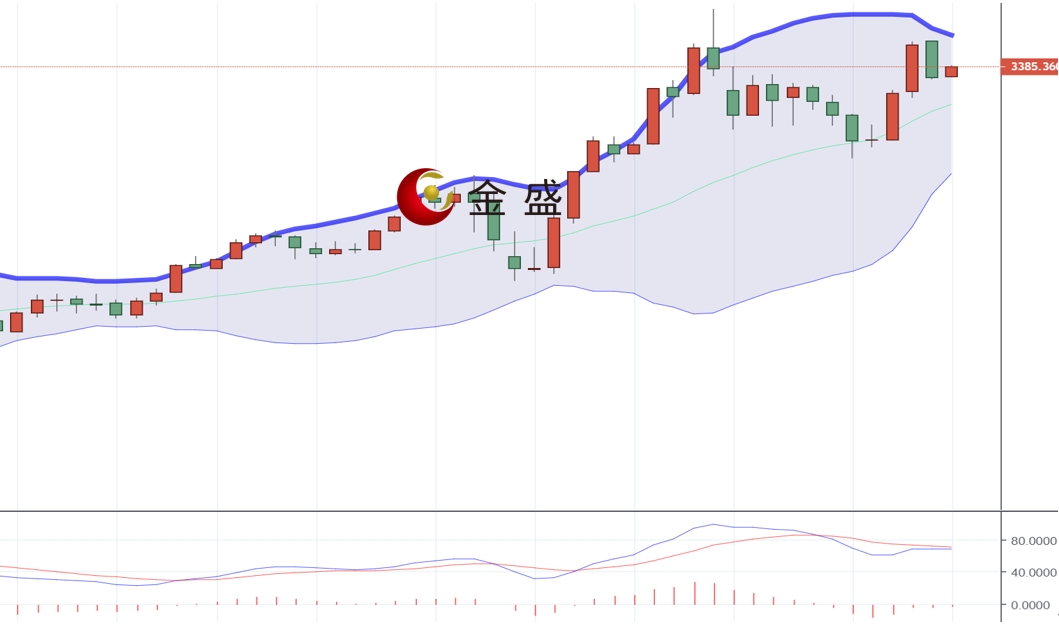 现货黄金上一交易日早盘最高上探3438一线后快速回落,日线最低触及3360附近后行情震荡拉升,最终以一根略带影线的大阴线收线,MACD指标死叉大幅放缓,多头动力减弱,黄金遇阻回落收跌,但走势仍维持在中轨等支撑上方,趋势仍倾向上行,目前避险买盘依旧为黄金提供支撑,上方重点3400区域压制,向下破位,行情则将进一步走空,下方关注3360-3350区间支撑。