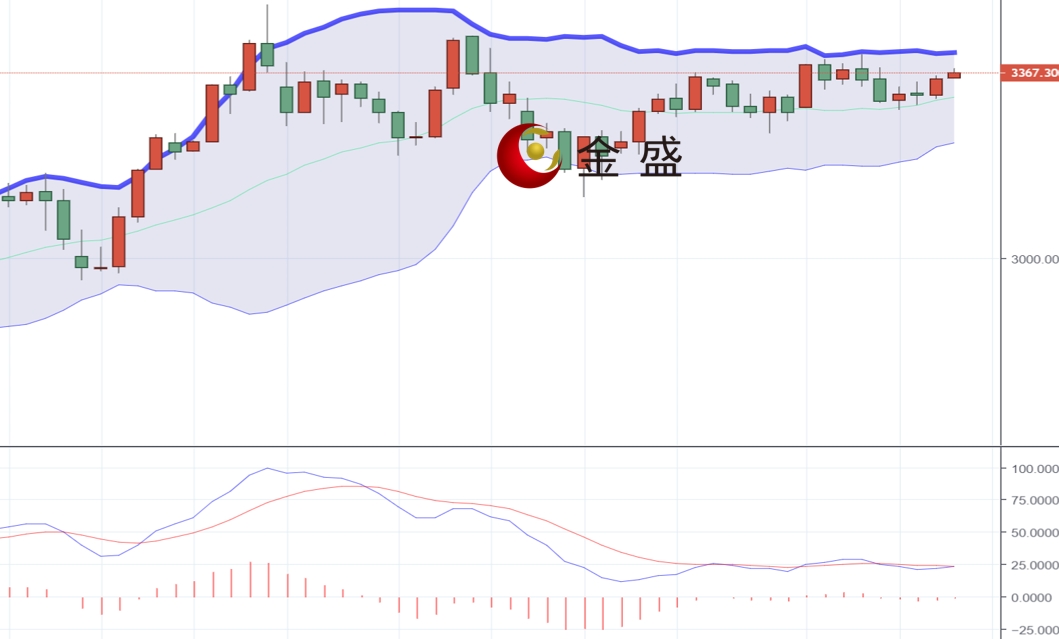 现货黄金上一交易日早盘开盘先回落,最低给到了3315的位置后行情拉升,亚欧盘黄金持续反弹,美盘黄金在基本面数据影响下出现剧烈波动,短线快速冲高至3360美元一线后再次受阻大幅回落,尾盘最低回落触及到了3319美元一线,随后下探回升强势收尾,日线以一根上下影线等长的大阳线收线。黄金目前受到连续的震荡十字止跌形态以及中轨线的支撑买盘推动再度走强,附图指标开始逐渐转为看涨信号发展,布林带也向上延伸,日内还有继续上涨的空间和需求,操作上继续看涨做多为主,上方关注3390-340区间阻力,下方关注3350-3340区间支撑。