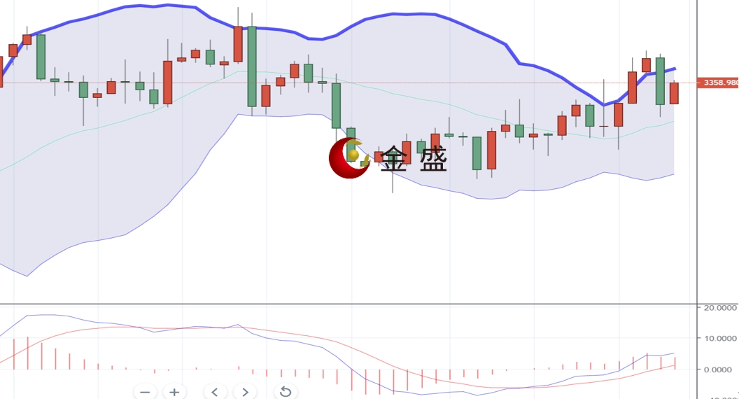 从四小时图来看,现货黄金上一交易日区间震荡洗盘,日内持续盘整,美盘受CPI数据影响,冲高3360承压下行至3320附近,今日早间开盘继续拉升破高,多头强势明显,布林带开口扩大,MACD红柱扩大,多头动能增强。金价回踩企稳中轨后连阳拉高,当前站稳3350上方,日内早盘二次拉高并突破新高,短线仍然强势,但不建议直接追高,上方关注3380-3390区间阻力,下方关注3335-3330区间支撑。
