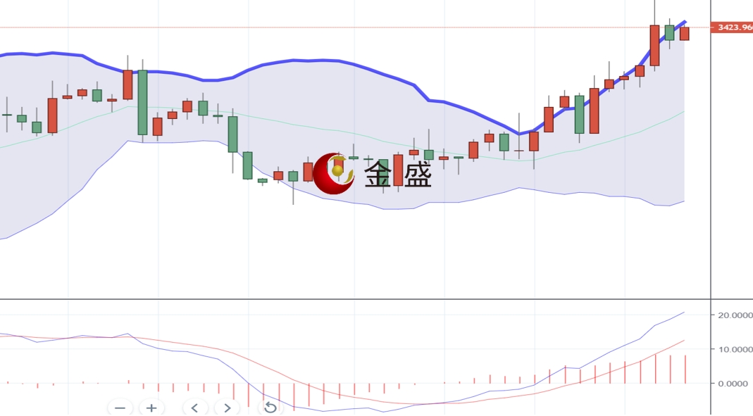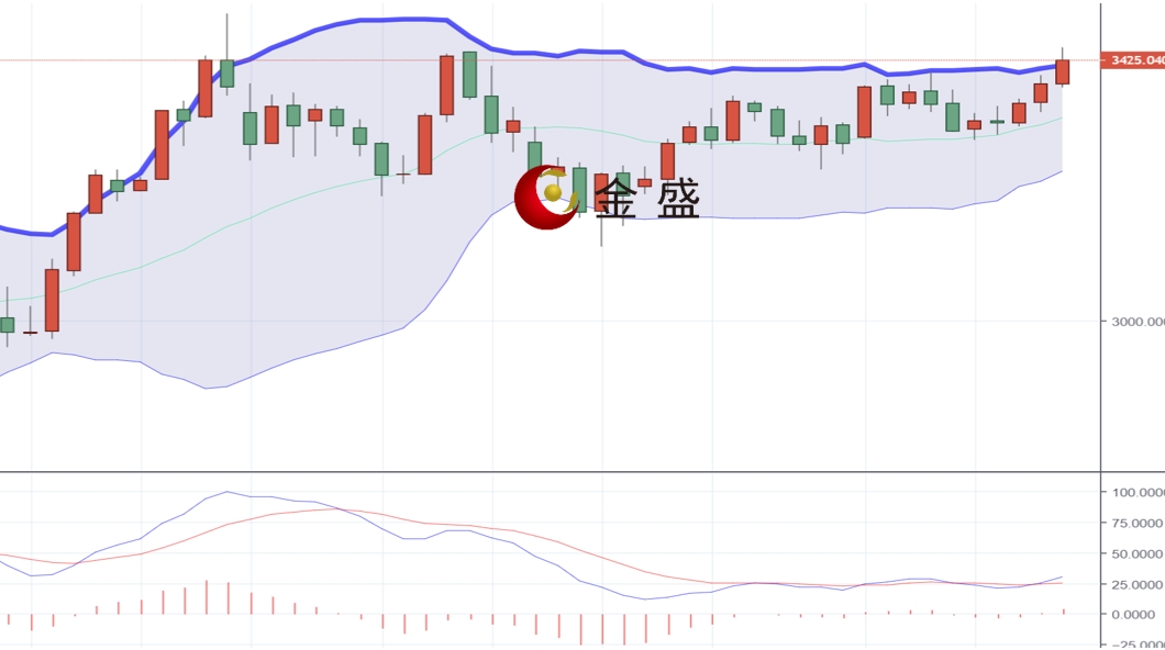 从四小时图来看,现货黄金上一交易日美盘续涨后维持高位震荡,中东局势升级,黄金再次避险上涨,早上直接突破3400后继续走高,最高突破3444附近,延续中期强势格局。指标macd金叉放量震荡,目前市场已经突破前面3400的长期压制位,金价已经得到延续上涨,作为关键压力位被打破,压力位将会转为支撑,日内重点关注3400关口的得失,若持续站稳该支撑区域上方,则延续逢低做多节奏。
