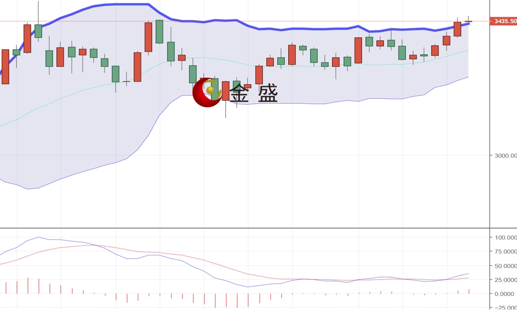 现货黄金上一交易日早间最低下探3379一线后快速走高,亚盘时段金价最高上探3444一线后回落,美盘时段金价延续短线震荡走高,最高上探3446一线后行情整理,日线连续三个交易日录得阳线。受中东紧张局势升温影响,现货黄金周一亚市开盘后走强,突破3450美元/盎司关口,金价自回踩中轨线等支撑后,再度连续反弹走强,布林带向上打开的幅度增强,附图指标也维持多头信号发展,后市仍看涨的前景较大。操作思路上看涨为主,上方关注3480-3490区间阻力,下方关注3430-3420区间支撑。