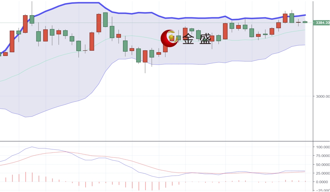 现货黄金上一交易日走了一个震荡下跌的行情走势,早间开盘先拉升,最高触及到了3403的位置后受阻回落,到凌晨时段最低触及3366的位置后行情尾盘强势拉升,日线最终以一根下影线长于上影线的启明星形态收线,且仍处于中轨上方,短期进入高位拉锯收缩震荡。日线走势上的上行趋势线依旧维持较好,调整修复结束后大概率仍继续上涨的空间,上方关注3400-3410区间阻力,下方关注3370-3360区间支撑。
