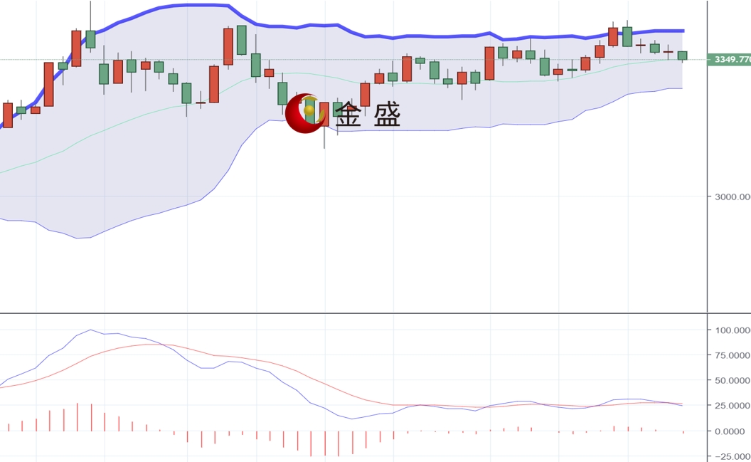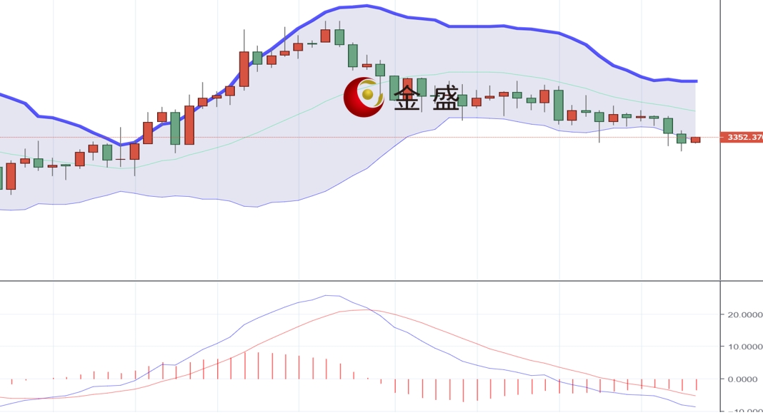 从日线图来看,现货黄金上一交易日技术面进一步承压3380关口承压回落震荡走跌,午后欧盘加速向下回落刺破3350关口反抽陷入震荡反复,日线十字K线收平,空间上进一步收敛,今日价格再度弱势,低点不断刷新,反弹力度越来越弱,中轨支撑已被刺破,后续价格有望进一步承压,操作上建议反弹做空为主。