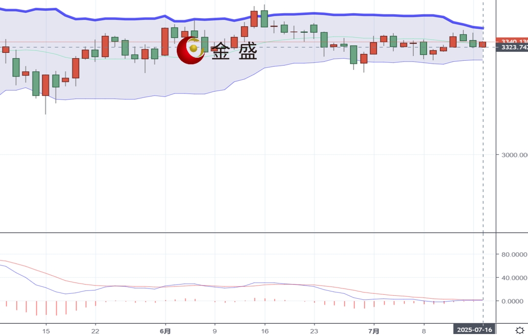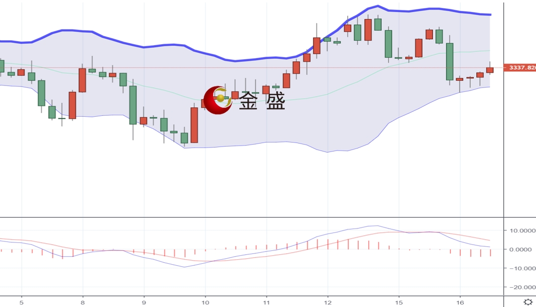 从日线图来看,现货黄金上一交易日早盘从3344附近一路震荡走高,最高上涨至3366一线承压维持反复窄幅整理,晚间跌破日内低点一度触及3320附近然后企稳反弹,日线录得一根带长上影线的中阴线,K线连阴且收线破位了中轨与短期均线的共振支撑,多头上涨动能有所放缓,指标macd粘合于零轴,黄金多次试探3375未能突破,短线有回落修正的必要,操作上谨慎追多。