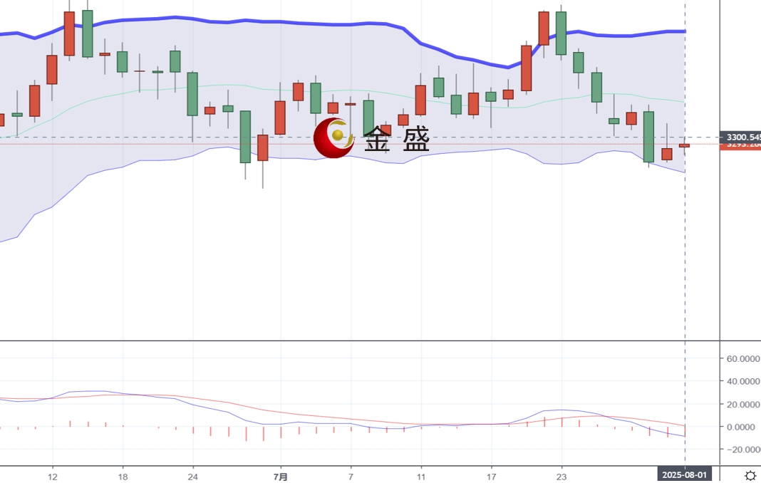 从四小时图来看,现货黄金上一交易日在震荡交投中迎来冲高承压震荡下行走跌,macd死叉缩量粘合放平运行,价格仍面临回落压力。当前价格保持弱势震荡,下降趋势运行完好,日内3300整数关口成为多空争夺之关键。晚间关注非农数据的影响,如果数据利多黄金,黄金可能出现上涨空间,进一步关注3340得失;如果数据利空,黄金在弱势下继续走低,下方关注3260得失。那么,在非农数据之前,黄金大概率3280-3300区间震荡。
