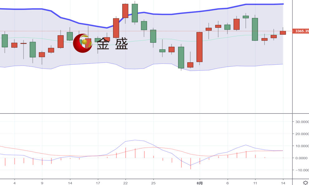 现货黄金上一交易日早盘开盘小幅承压,最低跌至3342美元位置后行情震荡拉升,最高触及到了3371附近后承压回吐日内涨幅,跌至3350美元企稳,日线以一根上影线长于下影线的类倒锤头形态收线。黄金目前在日线走势上继续维持在宽幅的区间震荡中,MACD双线持续在零轴附近,无明显的放量信号;行情下方得到3350附近支撑,金价连续两日震荡止跌回升,目前已重回中轨上方运行,多头动力增强,后市有望再度上探3400美元附近阻力,操作上建议低多为主。