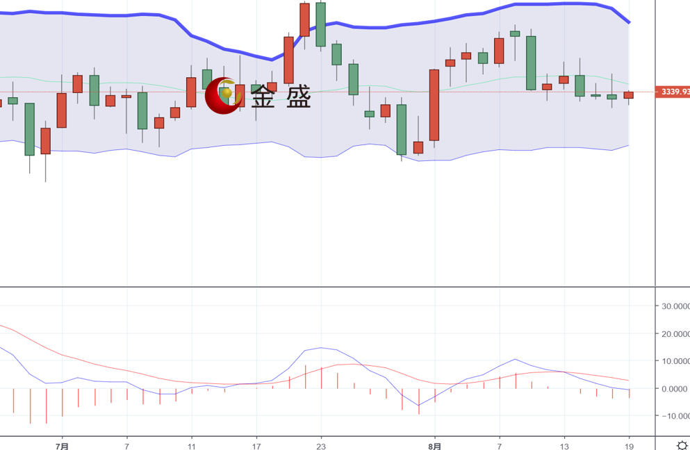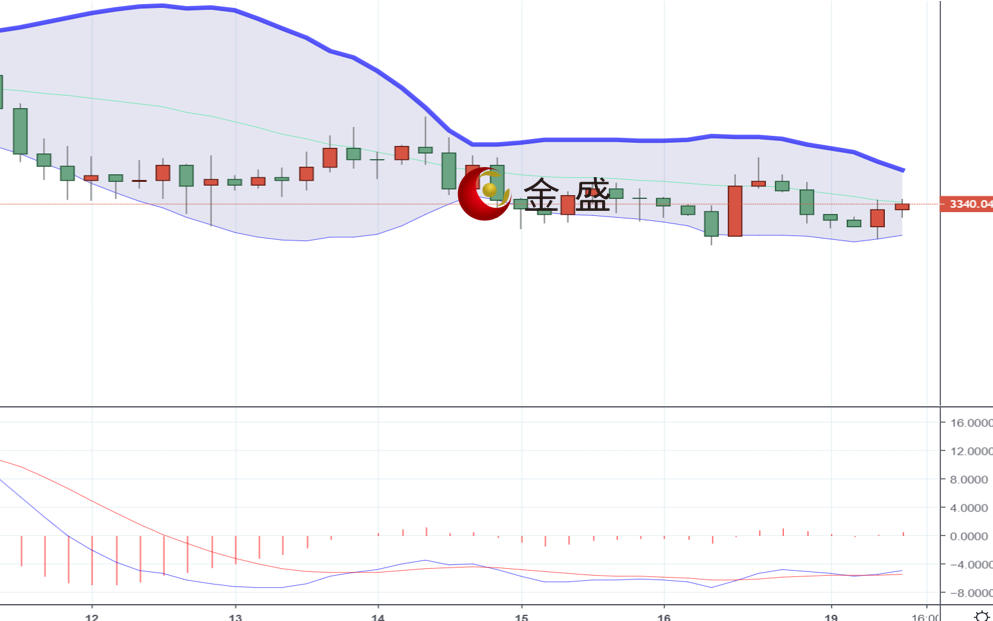 从日线图来看,现货黄金上一交易日早盘开盘后快速下探3324一线后V型反转,最高上涨至3358附近;欧盘震荡回落,美盘则延续欧盘的弱势最低测试3330区域,尾盘低位弱势震荡,日线以阴十字线收盘。今日早盘快速下探3326附近回升,最高3341一线遇阻回落,布林带三轨缩口,日线属于大区间震荡,继续保持偏弱整理的节奏。