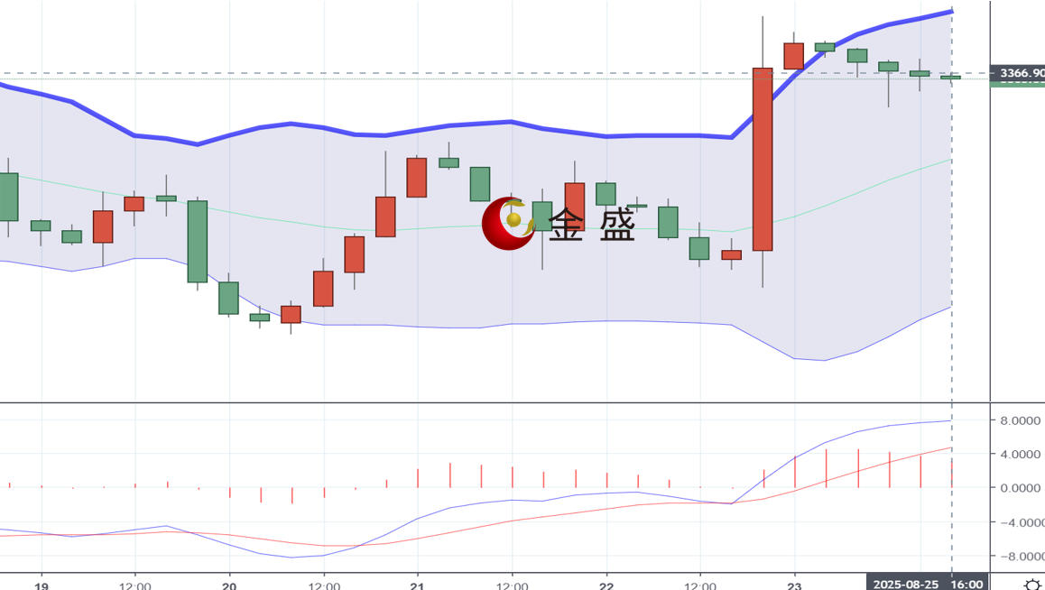 从四小时图来看,现货黄金上一交易日多头绝地反击,突破震荡走势,晚间大涨至3378附近。今日黄金呈现震荡整理格局,整体在3372-3359区间震荡,连续的寸头下行K线开始逐步击破短周期均线,在短线走势上有开始逐步走弱的迹象。当前macd二次金叉放量运行,布林带暂时收口,短期走势上可能还有继续向下调整的空间,重点关注下方支撑3350一线得失。