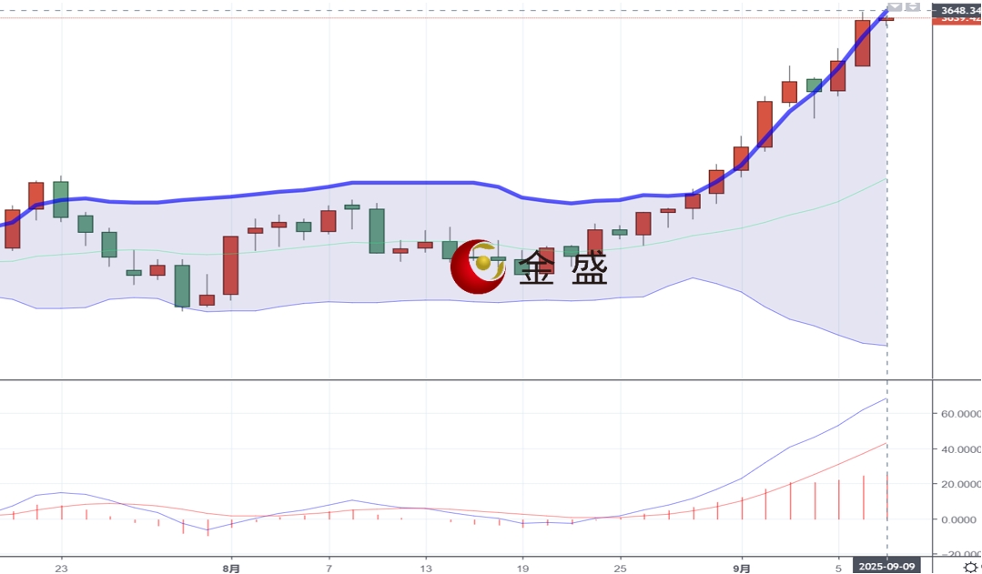 现货黄金周一(9月8日)亚市早间开盘于3578.31美元/盎司,最高3646.50美元/盎司,最低3578.21美元/盎司,收盘3635.70美元/盎司,全天波幅约68美金,当日涨幅约1.42%。