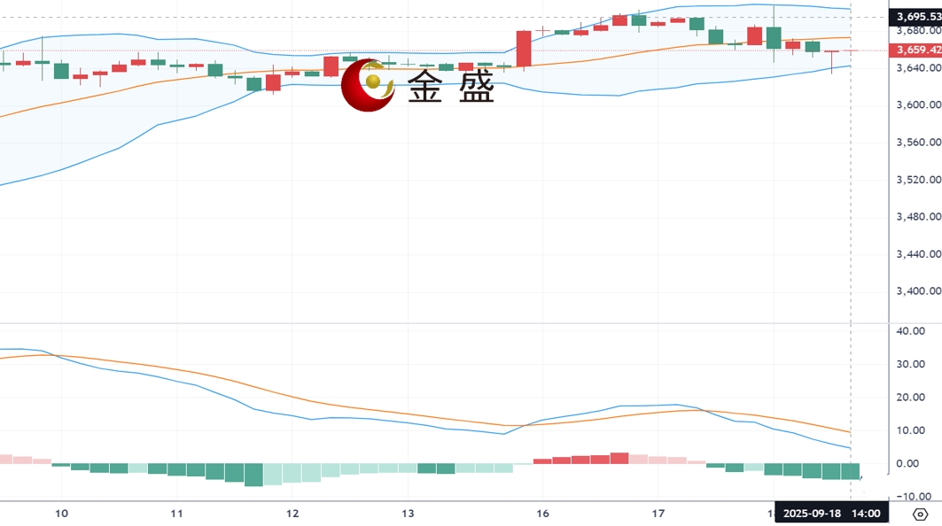 从四小时图来看,现货黄金上一交易日凌晨美联储利率决议期间,一度刷新历史新高至3707美元/盎司,但随后快速下跌,最低触及3646美元;金价跌破布林中轨了,短线趋势进一步转弱,今日早盘反弹3670上方再次展开回落,目前下方3630一线仍是比较关键支撑,若有效跌破该关键支撑,短线可能下探3610-3600美元区域;若金价强势突破并站稳3680美元,可能再次测试3700关口。