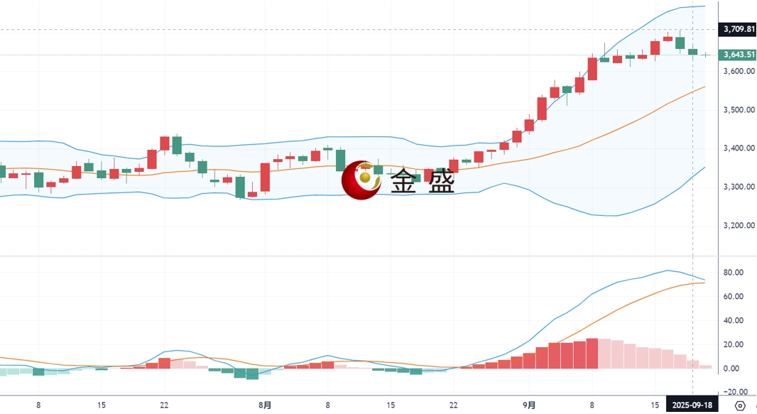 现货黄金隔日在获利回吐中下跌,市场对美联储进一步降息的立场进行了评估。美联储主席鲍威尔鸽派不及预期,美国初请失业金数据好于预期,美元指数和美债收益率大幅反弹,促使黄金多头获利了结,拖累金价表现。截至目前,现货黄金窄幅震荡,最高触及3650.99美元/盎司,最低至3632.21美元/盎司。