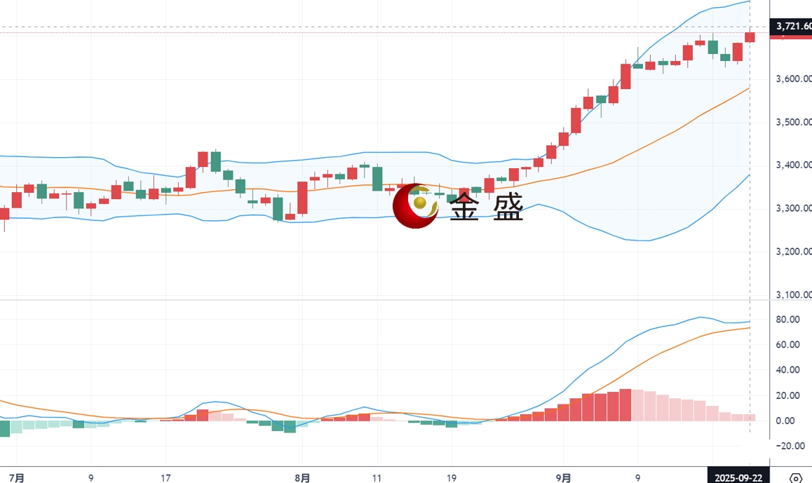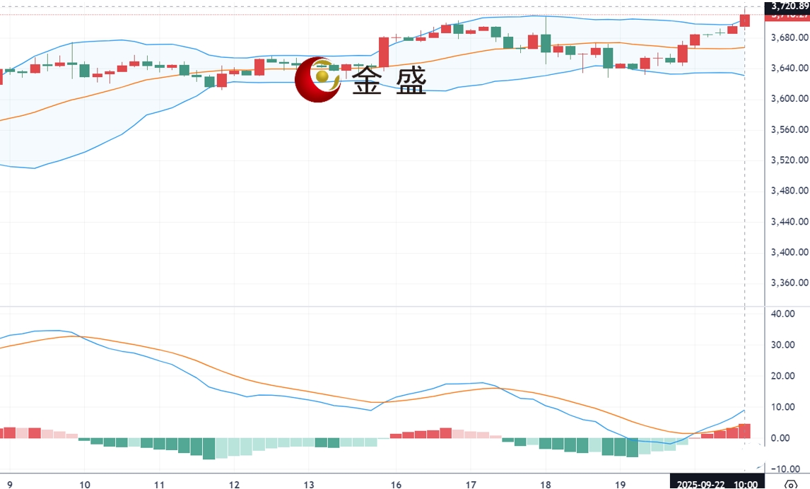 从四小时图来看,现货黄金上一交易日多次回踩之后开始向上发力,再度强势收涨。今日黄金开盘下探3683附近后未进一步深跌,午后价格突破3700关口,上行最高涨至3719附近,突破历史新高。低点抬升,高点逐次上移向上攀升,当前金价保持在高位运行,macd金叉放量运行,布林带开口,短期技术上来看依旧偏强,操作上回落顺势继续跟多,下方关注3700附近支撑,上方关注3720-3730区间阻力。