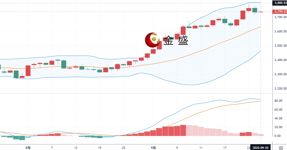 现货黄金隔日因美元走强而回落,从上一交易日创下的纪录高位下滑,盘中一度跌至3717美元的低点,但随后收复部分失地,最终收跌。同时投资者静待本周晚些时候将公布的经济数据,以寻找有关美联储政策路径的进一步线索。截至目前,现货黄金窄幅震荡,最高触及3751.28美元/盎司,最低至3717.4美元/盎司。