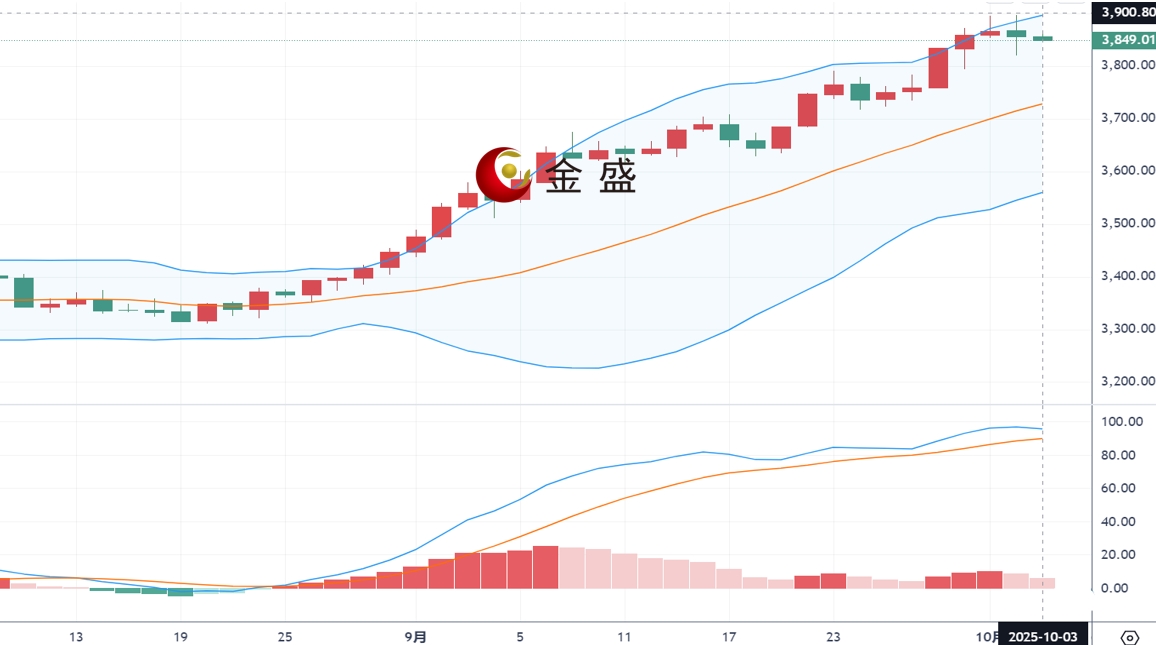 现货黄金上一交易日开盘先回落至3852美元/盎司附近后行情强势拉升,日线最高触及到了3897的历史新高后行情获利了结强势回落,美盘时段最低触及3819美元/盎司后尾盘强势拉升,日线最终以一根下影线稍长于上影线的长脚十字星形态收线。黄金深度破位下跌,行情承压之后运行在区间震荡中,日线多头形态不变,重点仍是看3900能否上破,操作上建议回撤布局多单为先,高空为辅,上方关注3870-3880区间阻力,下方关注3830-3820区间支撑。