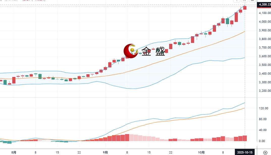 现货黄金隔日升破4100美元再创纪录新高,盘中最高触及4180美元/盎司关口,为连续第三个交易日上涨;因市场预期美联储本月将降息,以及贸易紧张局势加剧,点燃投资者的避险情绪。现货白银同样坐上过山车,盘中续刷历史新高后跳水,最终收跌。截至目前,现货黄金继续上攻,最高触及4186.42美元/盎司,最低至4127.77美元/盎司。