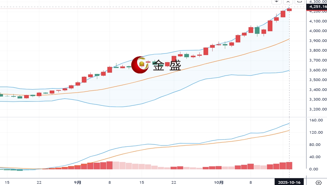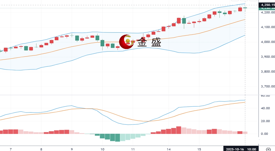 从四小时图来看,现货黄金上一交易日多头继续刷新高点,最高抵达4218附近位置,最终依旧收盘在高位。今日黄金延续其创纪录的涨势,并创下新纪录高点至4241美元/盎司,金价在布林中轨附近运行,MACD指标高位金叉缩量震荡,技术面显示多方继续占优,黄金连续五天持续上涨,市场看涨情绪强烈,多头强势不改,操作上建议还是回踩做多为主,上方关注4250-4260区间阻力,下方关注4170-4160区间支撑。