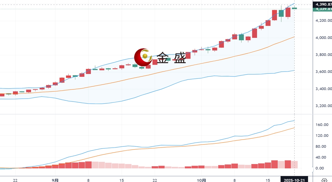 现货黄金隔日突破上周五的纪录高位,触及4381美元/盎司,最终收涨;受助于美国进一步降息的预期和避险需求持续,与此同时,投资者等待即将举行的贸易谈判和本周美国公布的通胀数据。截至目前,现货黄金高位震荡,最高触及4380.93美元/盎司,最低至4332.78美元/盎司。