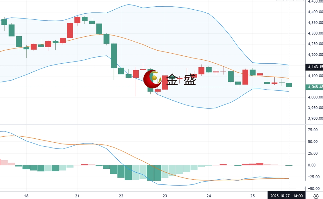 从日线图来看,现货黄金上一交易日反弹触及4144美元一线后受阻出现一波回踩,欧盘最低触及到了4044美元一线,最终收十字阴线。今日早间价格低开低走,白盘延续走低,黄金目前在日线走势K线继续维持在低位的区间震荡修复,反弹的力度和延续度都不算太大,继续维持在震荡偏弱一些走势,支撑不断下移,高点逐渐降低,整体仍反弹偏空。