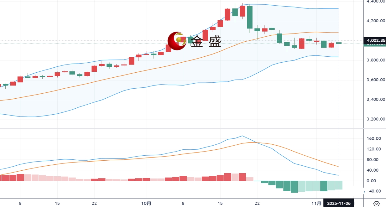 现货黄金上一交易日早盘开盘小幅回踩至3927的位置后行情强势震荡拉升,美盘时段最高触及到了3990附近后行情整理,日线以一根上影线稍长的中阳线收线。黄金止跌回升收涨,仍震荡于中轨下方,短线阴阳互换的震荡修正当中,多头表现并未特别强势,有进一步走低的倾向,但附图指标空头信号处于持续缩减趋势,日内谨慎维持高空低多交易思路。上方关注4000-4010区间阻力,下方关注3950-3940区间支撑。